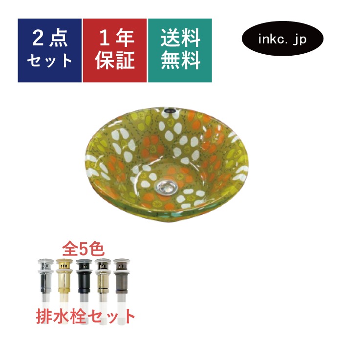 洗面ボウル おしゃれ 花 模様 黄色 ガラス 手洗い鉢 405Φ×H140 HA-8607
