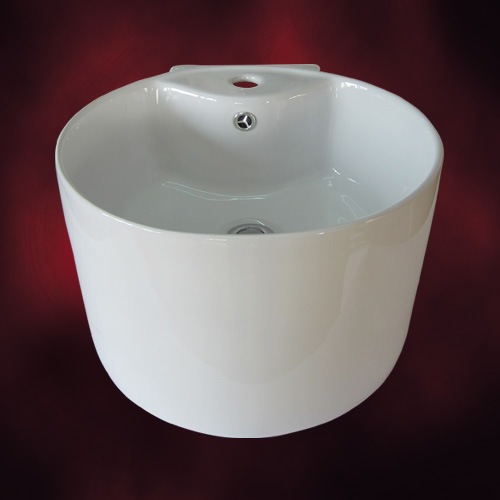 【廃番】洗面ボウル 陶器 丸型 シンプル 手洗い鉢 シンク 埋め込み オーバーフロー有り W430×D430×H210 INK-0...