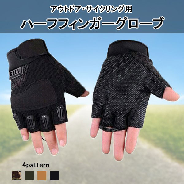 【即納】メンズ グローブ ハーフフインガータイプ サイクリング アウトドア スパンデックス GELパッド マジックテープ止め 衝撃...
