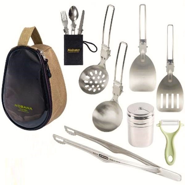 アウトドア キッチンツール 調理器具8点セット ステンレス製 収納袋付き コンパクト収納可能 透明カバー 持ち運びが簡単 初心者オ...