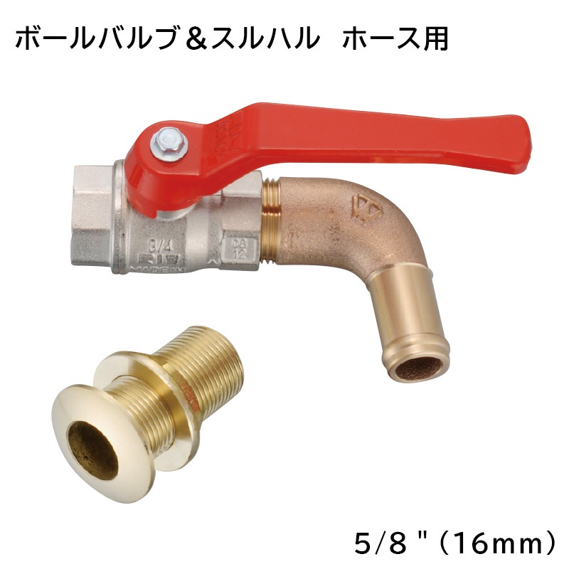 ジャブスコ ボールバルブ&スルハル 5/8インチ 16mm ホース用 トイレ配管用 開閉弁 吸排水口