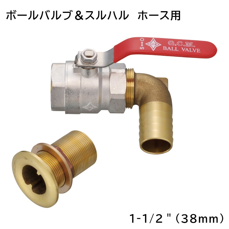 ジャブスコ ボールバルブ&スルハル 1-1/2インチ 38mm ホース用 トイレ配管用 開閉弁 吸排水口