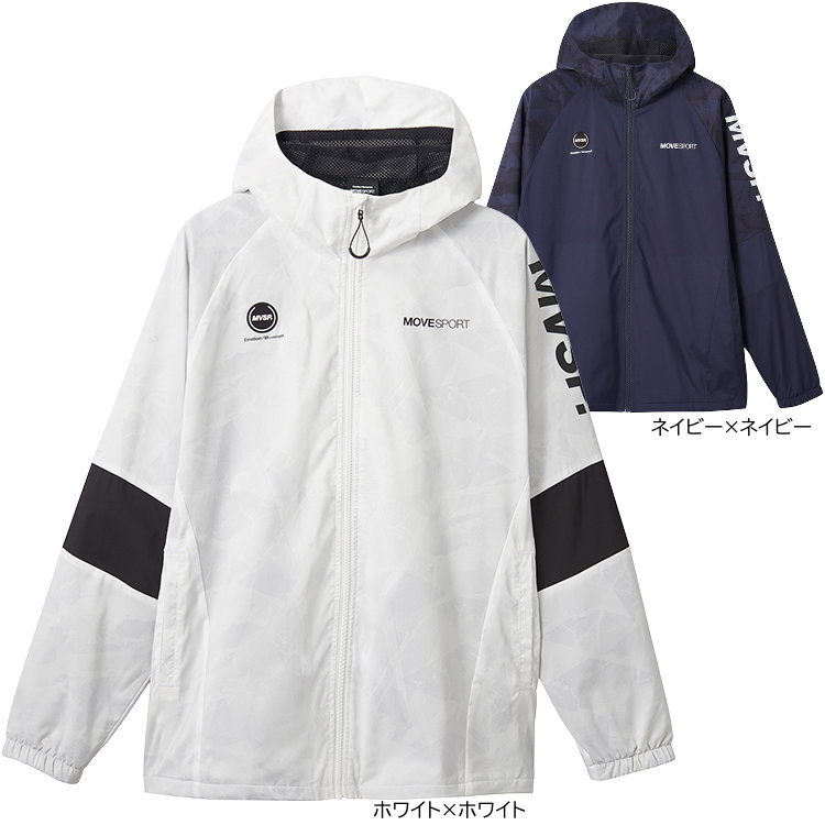 ムーブスポーツ ウインドブレーカー ジャケット フード付き メンズ ヒートナビ タフ 総柄フルジップフーディー ホワイト/ネイビー...