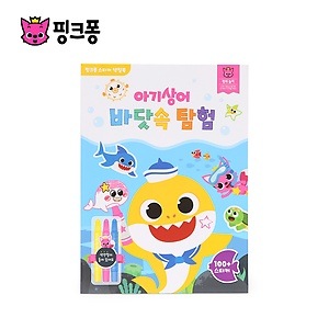韓国書籍 PINKFONG ピンクフォン ステッカー ぬりえブック - ちびザメの海の中探険(本+色鉛筆3個)