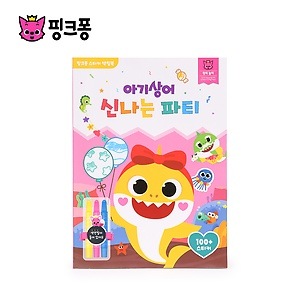 韓国書籍 PINKFONG ピンクフォン ステッカー ぬりえブック - ちびザメ 楽しいパーティー(本+色鉛筆3個)