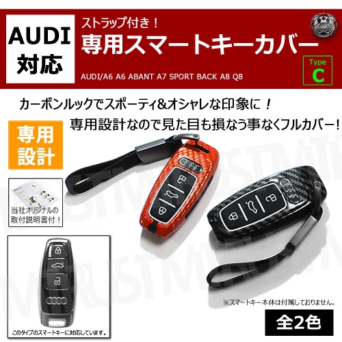 アウディ 専用 スマートキー カバー TypeC ストラップ付 レッド ブラック カーボン A6 A6 ABANT A7 SPOR...