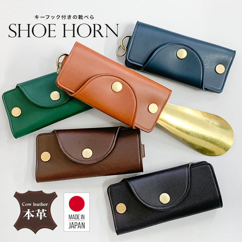 靴べら キーホルダー 携帯用 おしゃれ 真鍮 本革 コンパクト 折りたたみ 牛革 日本製 キーケース 黒 ブラック ブラウン グリ...