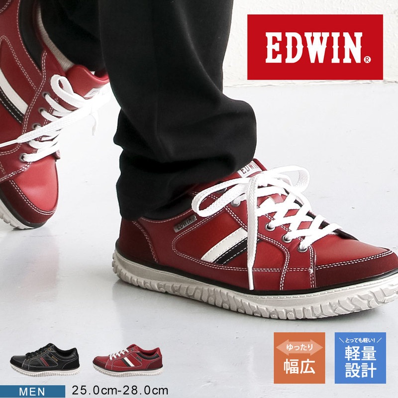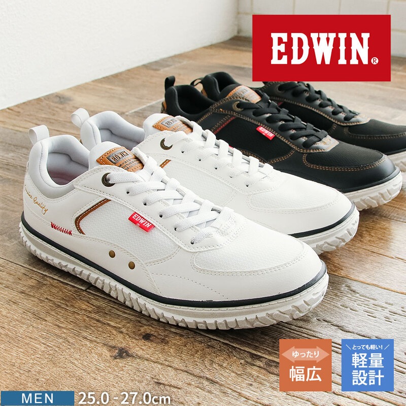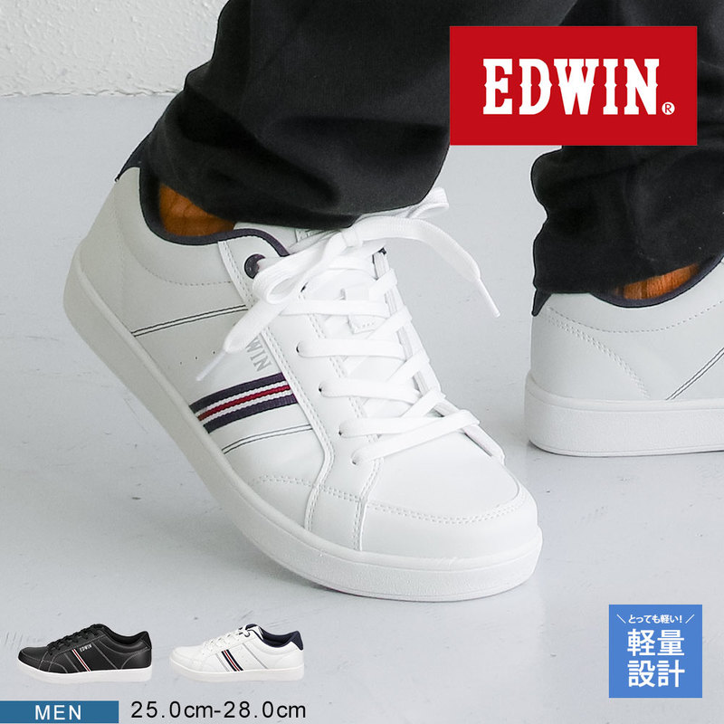 エドウィン スニーカー メンズ ローカット 軽量 クッションインソール 大きいサイズ 通勤 通学 edwin 白 ホワイト ブラッ...