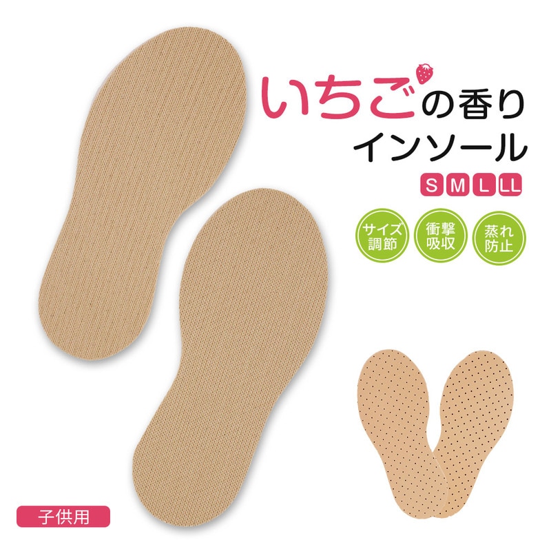インソール 子供用 衝撃吸収 中敷き キッズ 靴のサイズ調整 いちごの香り クッション 通気性 スニーカー 小学生 ベージュ こど...