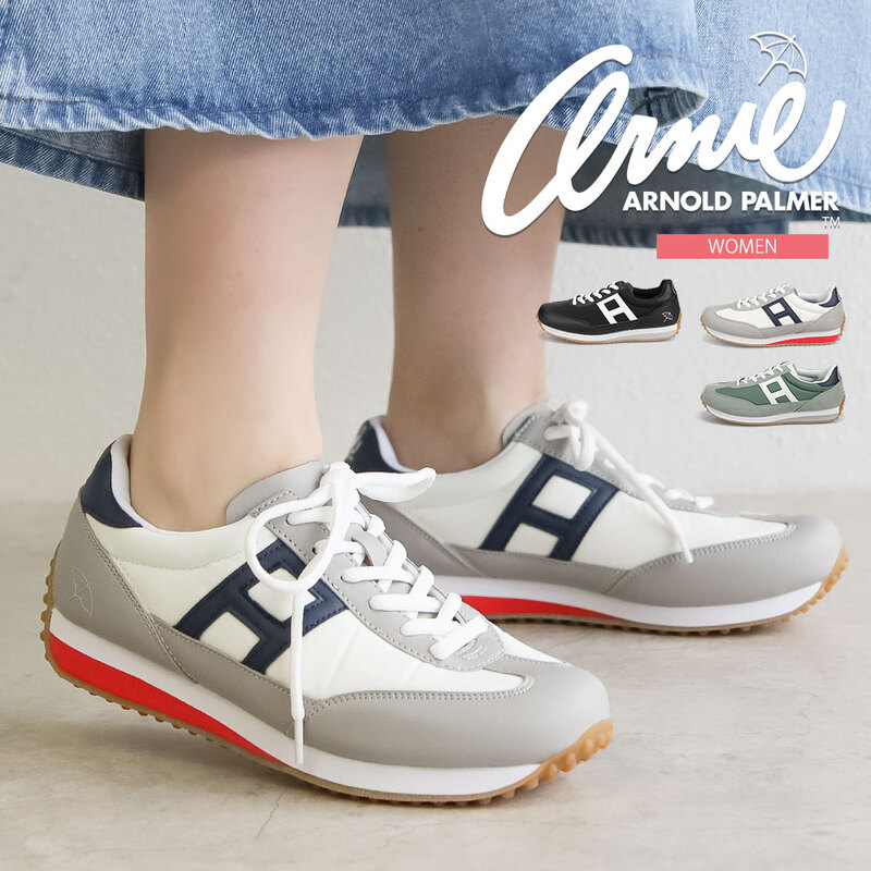 アーノルドパーマー スニーカー レディース ローカット シンプル レースアップ 紐靴 レトロ クッション 黒 ブラック グレー グ...