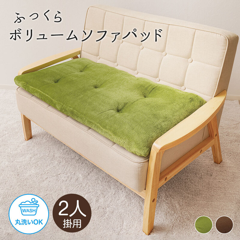 2人掛け用 ソファー パット ごろ寝 クッション 厚手 へたりにくい 丸洗い グリーン ブラウン 昼寝 洗える!ふっくらボリューム...