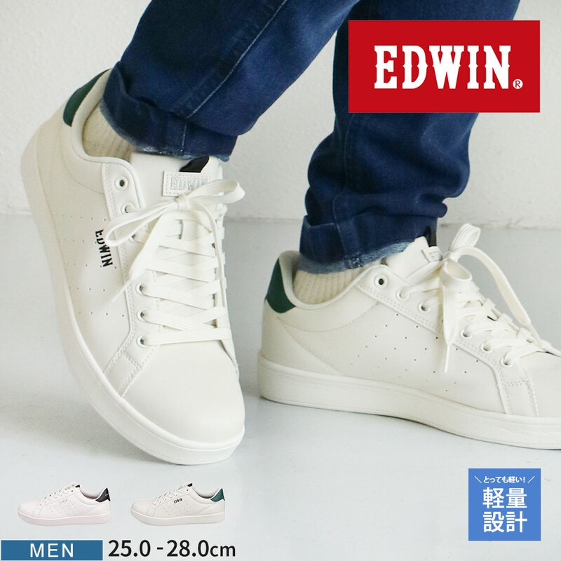 エドウィン スニーカー メンズ 白 軽量 ローカット コートタイプ 靴 シューズ 軽い メンズスニーカー アイボリー 男性 ED...