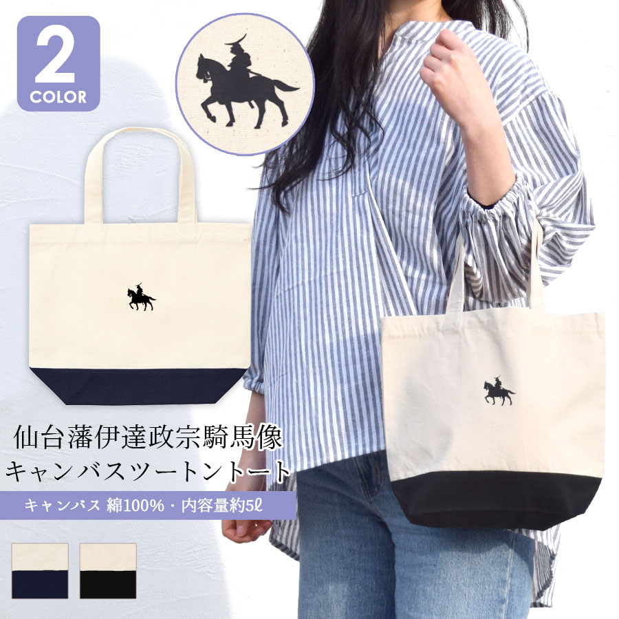トートバッグ 政宗 レディース メンズ 小さめ ツートンカラー バイカラー 仙台藩 伊達政宗 騎馬像 【送料pt100】