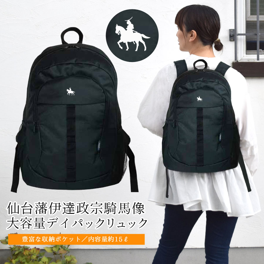 リュック レディース メンズ 大容量 大きめ 政宗 通勤 通学 デイパック 仙台藩 伊達政宗 騎馬像 【送料pt100】
