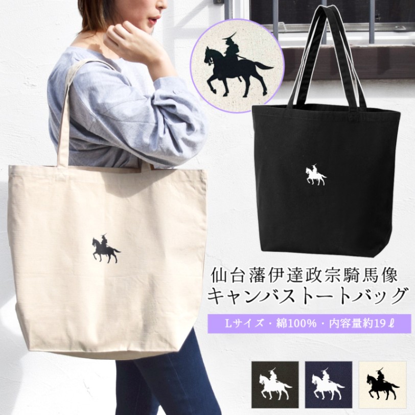 トートバッグ 仙台藩 伊達政宗 騎馬像 キャンバス A4 バッグ エコバッグ 大きめ 大容量 軽量 【送料pt100】