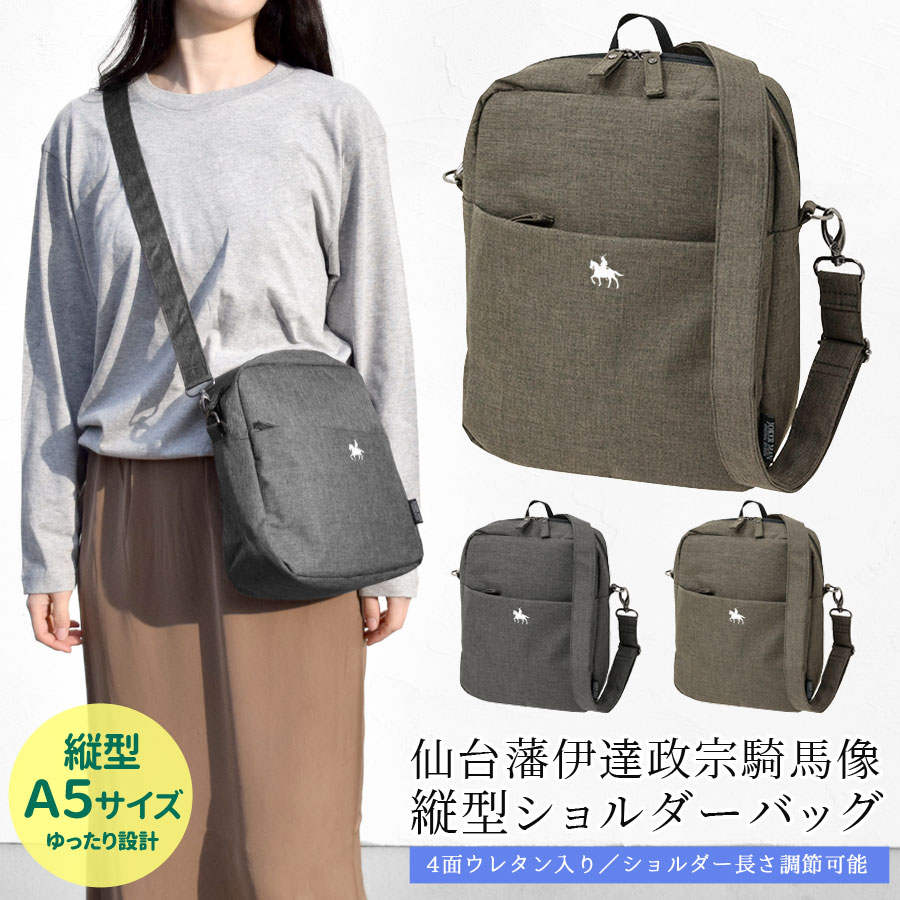 ショルダーバッグ レディース メンズ 斜め掛けバッグ 政宗 A5 縦型 大容量 仙台藩 伊達政宗 騎馬像 【送料pt100】