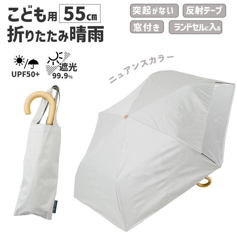 [54794] キッズ 折りたたみ傘 LINEDROPS 晴雨 55cm ベージュ 透明窓 突起のない露先 反射テープ UVカット...