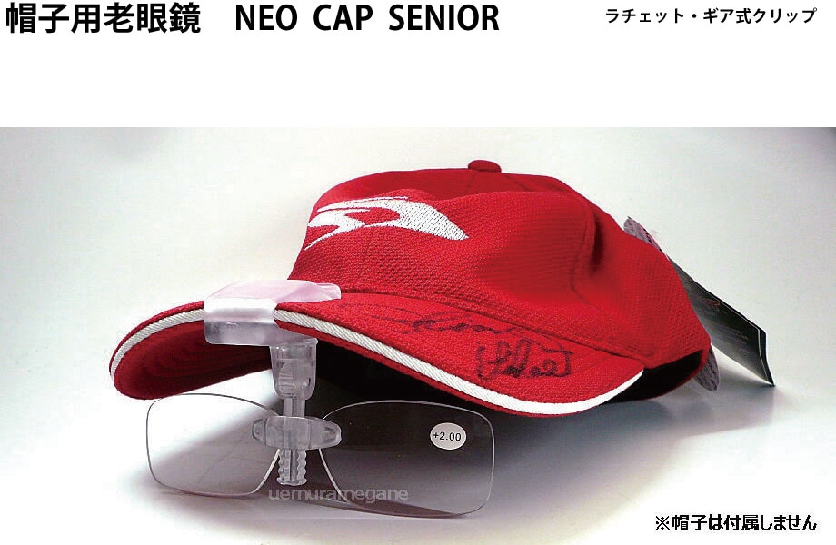 帽子用老眼鏡 ネオキャップ シニア ME-7 ハネアゲ 老眼鏡 フリップアップ 冒険王 ラチェット・ギア式クリップ 釣り用
