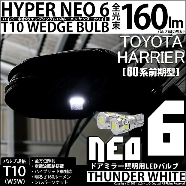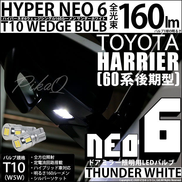 【即納】【メール便可】トヨタ ハリアー[60系 前期モデル]対応 ドアミラー照明用LED T10 HYPER NEO 6ウェッジシ...