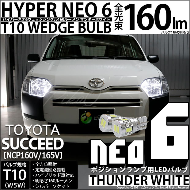 【即納】【メール便可】トヨタ サクシード[NCP160系]対応 ポジションランプ用LED T10 HYPER NEO 6ウェッジシ...