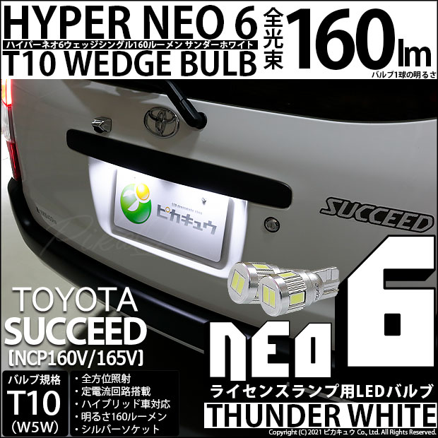 【即納】【メール便可】トヨタ サクシード[NCP160系]対応 ライセンスランプ用LED T10 HYPER NEO 6ウェッジシ...