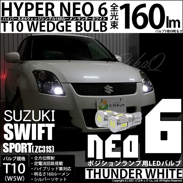 【即納】【メール便可】スズキ スイフトスポーツ[ZC31S]対応 ポジションランプ用LED T10 HYPER NEO 6ウェッジ...