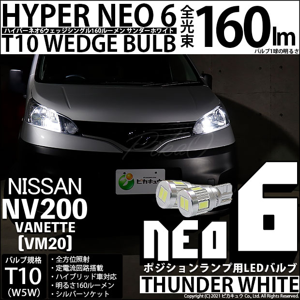 【即納】【メール便可】ニッサン NV200 バネット[VM20]対応 ポジションランプ用LED T10 HYPER NEO 6ウェ...