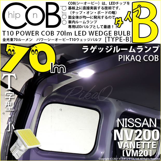 【メール便可】ニッサン NV200 バネット[VM20]対応 ラゲッジルームランプ用LED T10 POWER COB 70lm ...