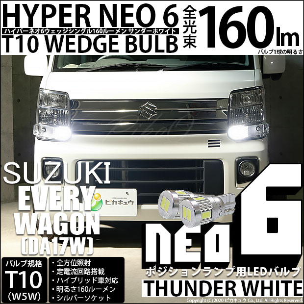 【即納】【メール便可】スズキ エブリィワゴン[DA17W]対応 ポジションランプ用LED T10 HYPER NEO 6ウェッジシ...