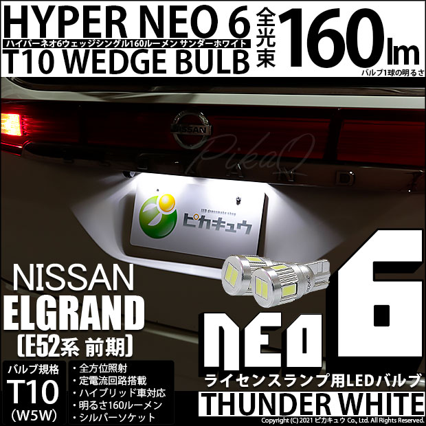 【即納】【メール便可】ニッサン エルグランド[E52系 前期モデル]対応 ライセンスランプ用LED T10 HYPER NEO 6...