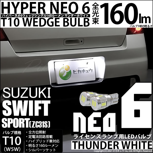 【即納】【メール便可】スズキ スイフトスポーツ[ZC31S]対応 ライセンスランプ用LED T10 HYPER NEO 6ウェッジ...