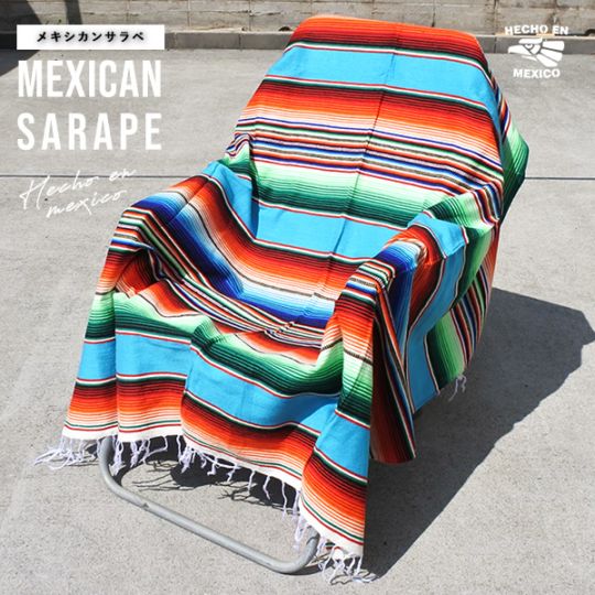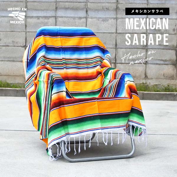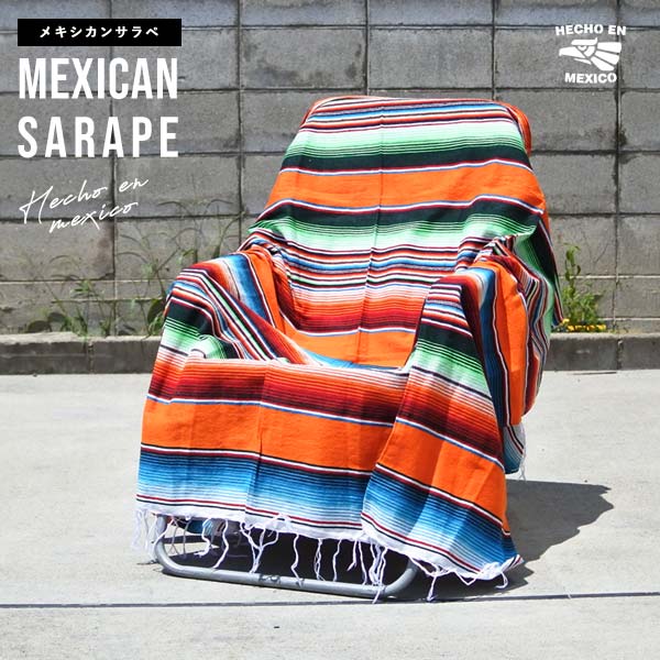 サラペ マルチカラー No.37 メキシカン ラグ オレンジ ブルー 大判 厚手 メキシカンラグ MEXICO ブランケット エス...