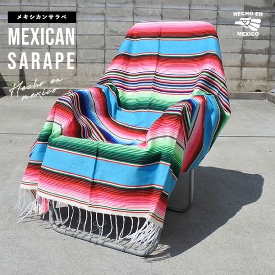 サラペ No.46 ターコイズブルー メキシカン ラグ 大判 厚手 メキシカンラグ MEXICO ブランケット エスニック ラグマ...