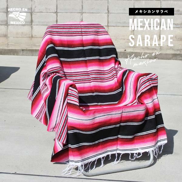 サラペ No.74 ピンク ブラック メキシカン ラグ 大判 厚手 メキシカンラグ MEXICO ブランケット エスニック ラグマ...