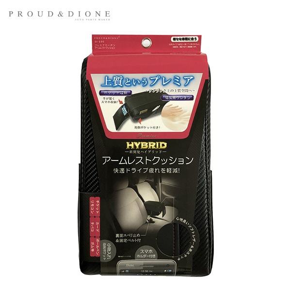 プラウド プレミアカーボンアームクッション 3Dカーボン調 低反発 車内 固定ベルト付 収納可能 便利 DI-230