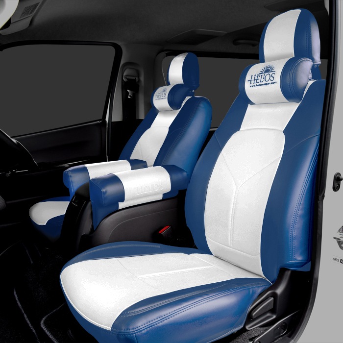 HELIOS 200系ハイエース S-GL PVCレザー シートカバー 【雑誌掲載】 ネイビーxホワイト 高品質 ヘリオス 1型...