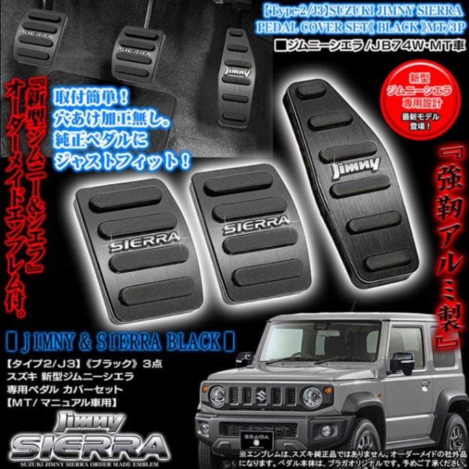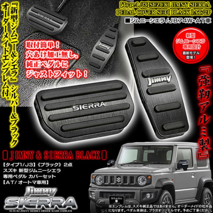 ジムニーエンブレム付【タイプ1/J2】スズキ JB74W 新型ジムニーシエラ AT車専用 アルミ製ペダル カバーセット《ブラック/...