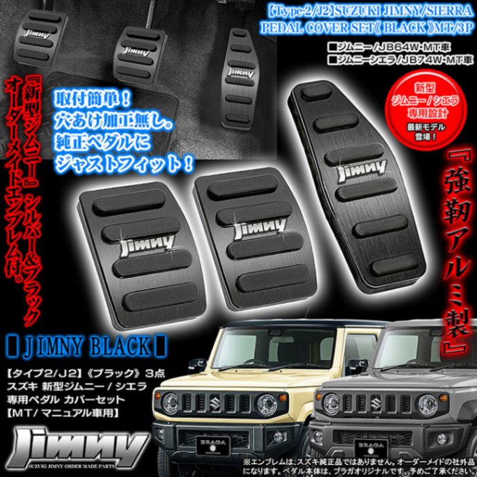 ジムニーエンブレム付【タイプ2/J2】スズキJB64W/74W新型ジムニー/シエラMT車専用 アルミ製ペダル カバーセット《ブラッ...