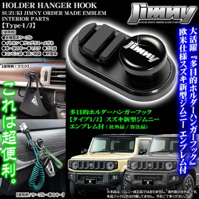 JB64W/74W/スズキ ジムニー/シエラ/多目的ホルダーハンガーフック/新型ジムニーエンブレム付/客注品【タイプ1/J】ケーブ...