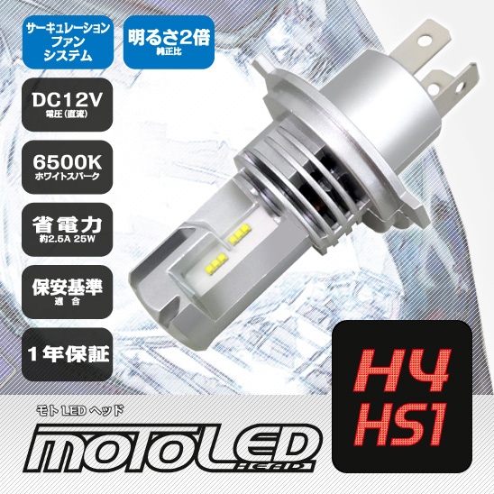【バイク用】 ミニバイク・原付用ヘッドライト MOTO LEDヘッド 12V H4/HS1 ファン付き【D-2135】