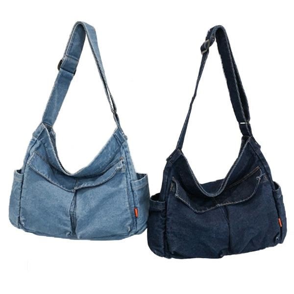 デニム ショルダーバッグ 内部ポケット サイドポケット 内側ジッパーポケット レディース ボディバッグ 斜め掛け 収納 インディゴ...