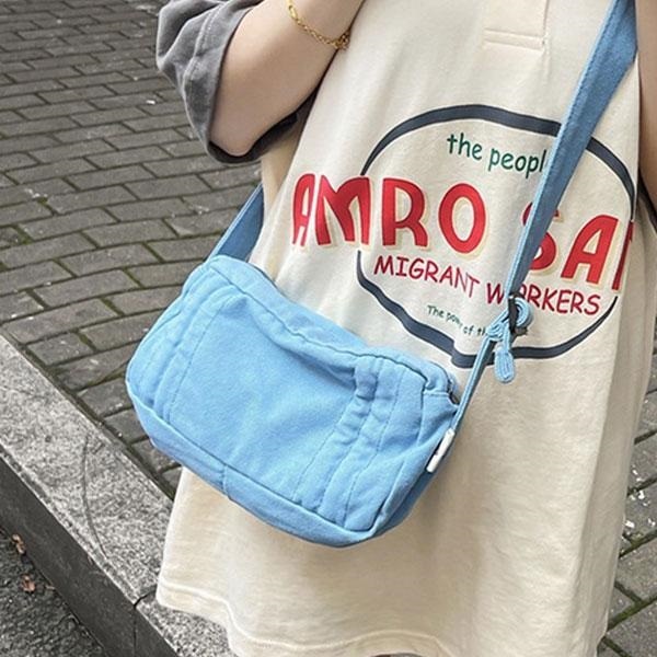 ユニセックス ショルダーバッグ キャンバス バッグ ファスナーポケット付き サイドポケット A4サイズ 斜め掛け 肩掛け 通学 通...