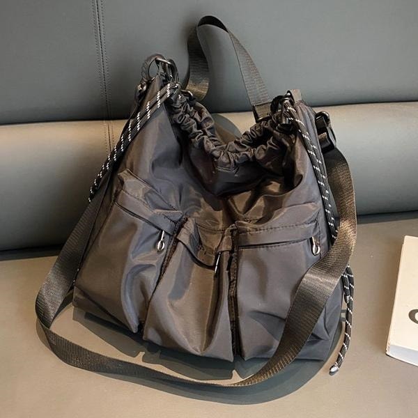 巾着 ショルダーバッグ 大容量 レディース バッグ 肩掛け ショルダーストラップ ポケット付き 旅行 ジム フィットネス 通勤 通...