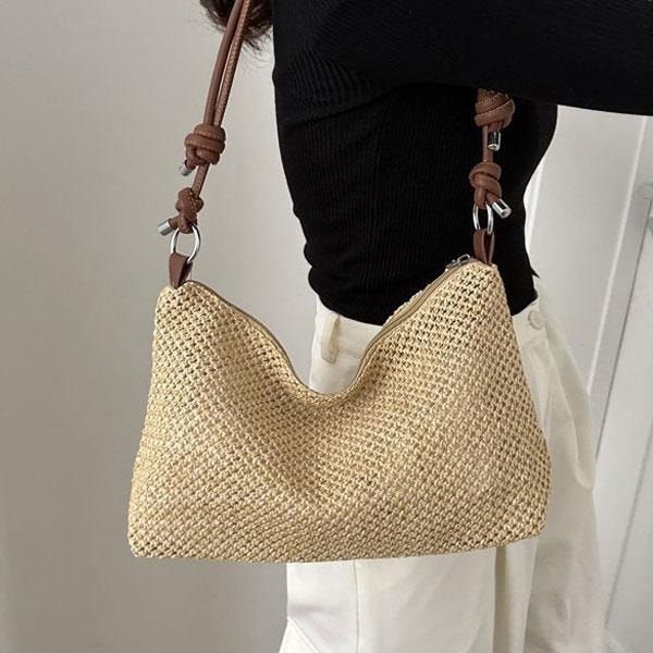 ストローバッグ 夏かばん 涼しげ 軽量 レディース バッグ 鞄 ショルダーバッグ 肩掛け カジュアル シンプル 夏コーデ 旅行 ビ...