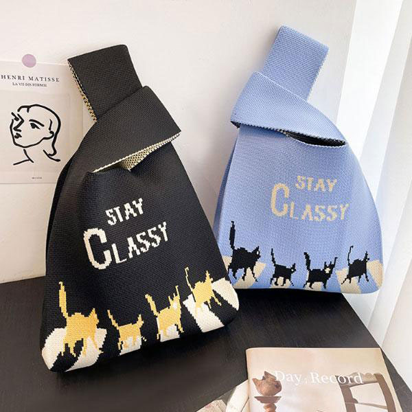 レディース 猫柄 ニット トートバッグ ハンドバッグ 編みバッグ サブバッグ マチ カジュアル 厚手 柔らかい 軽量 大容量 コン...