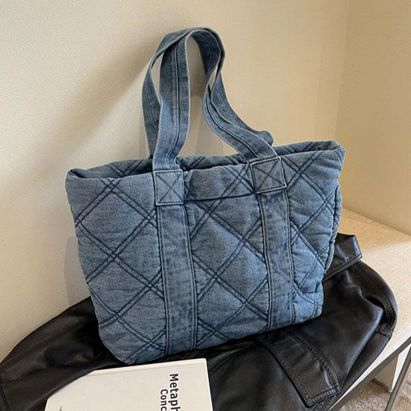 レディース キルティングバッグ デニム生地 大容量 A4 ファスナー付き 肩掛け 手提げ トートバッグ インディゴ カジュアル お...