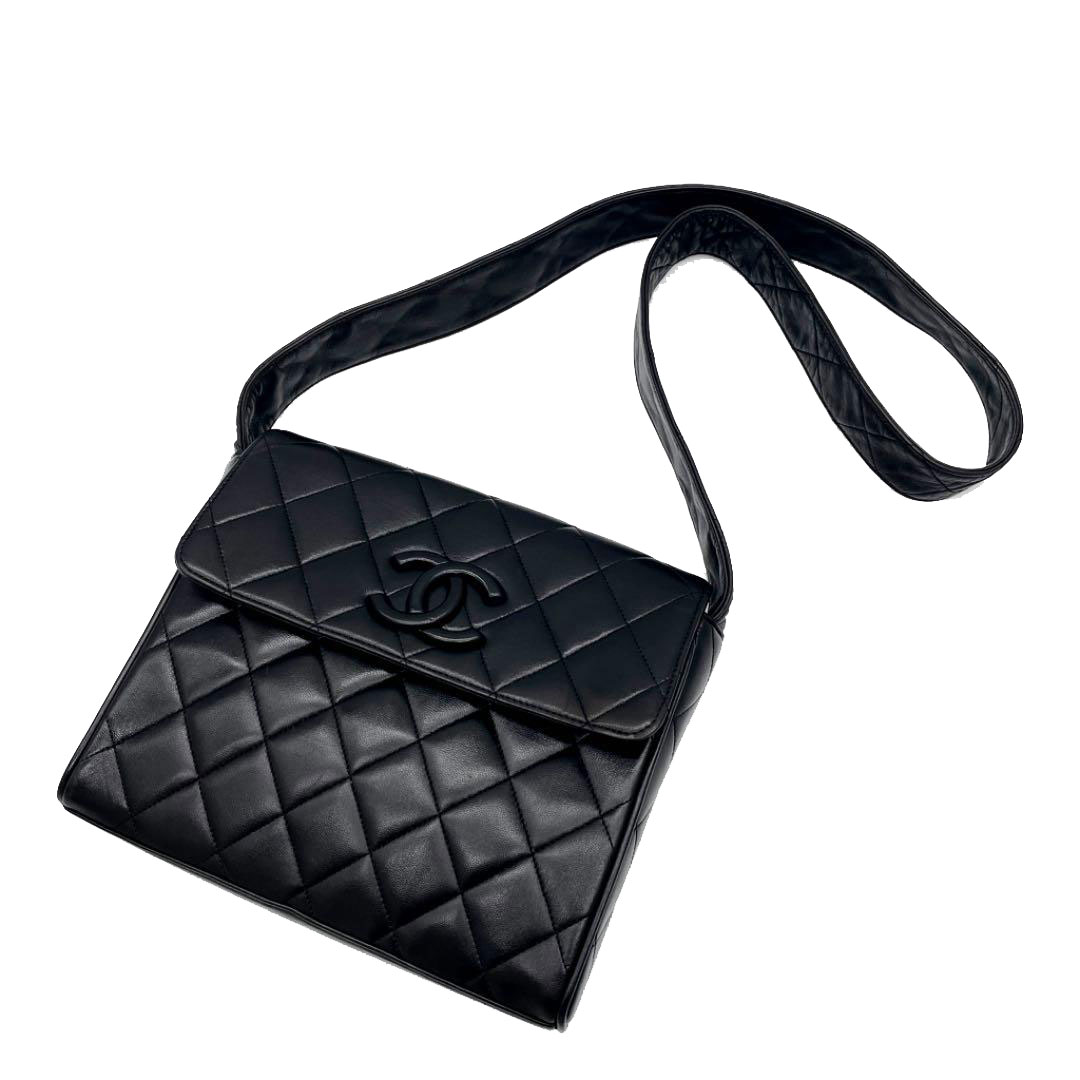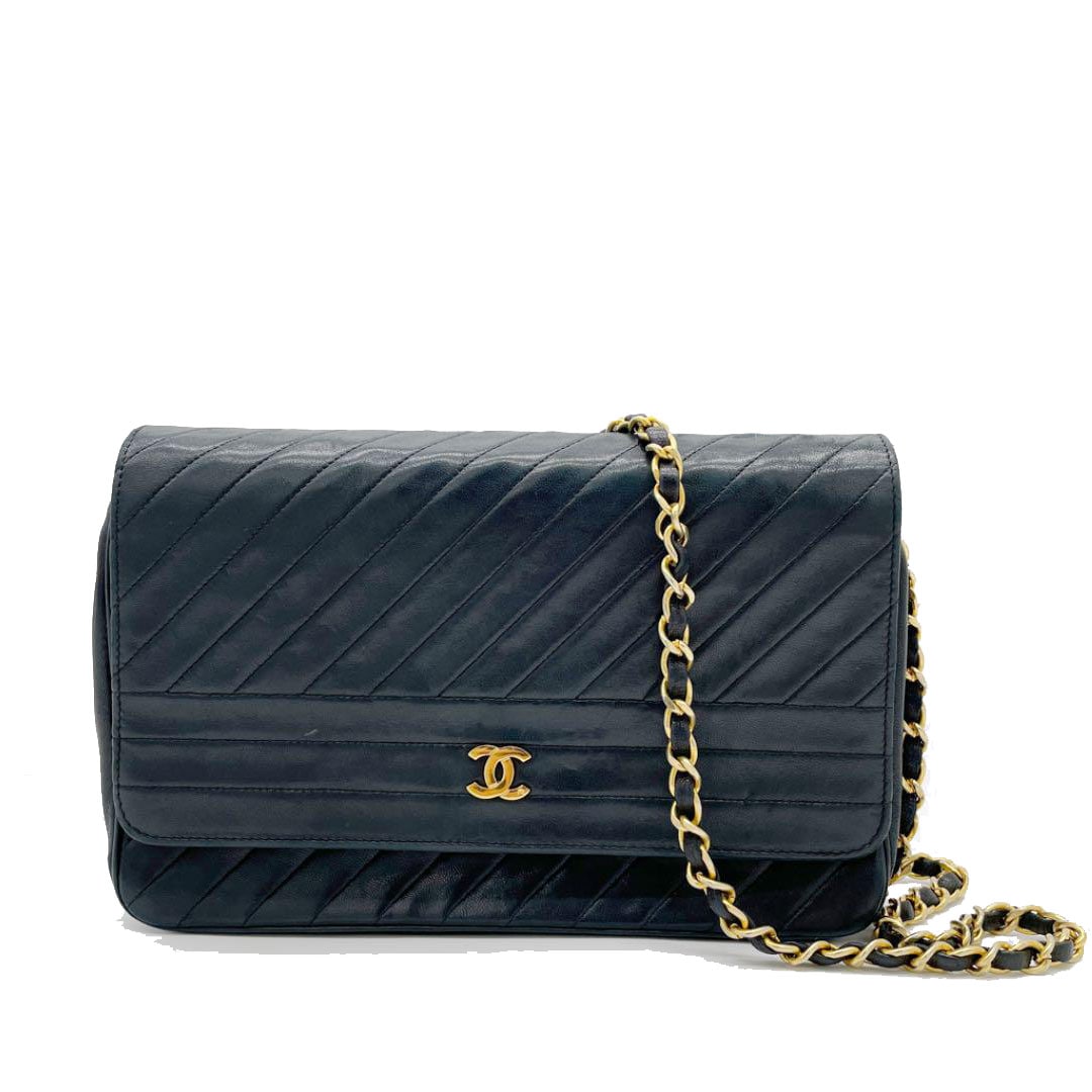 CHANEL シャネル チェーンショルダーバッグ プッシュロック 斜めステッチ ラムスキン ブラック ゴールド金具 ヴィンテージ