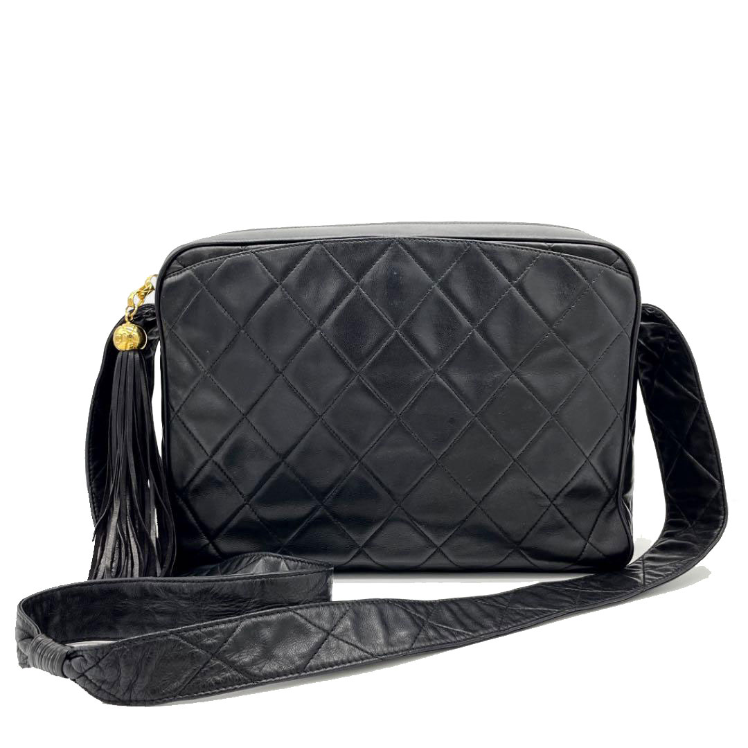 CHANEL シャネル マトラッセ チェーンショルダーバッグ タッセルチャーム ラムスキン ブラック ゴールド 2番台(1992年...