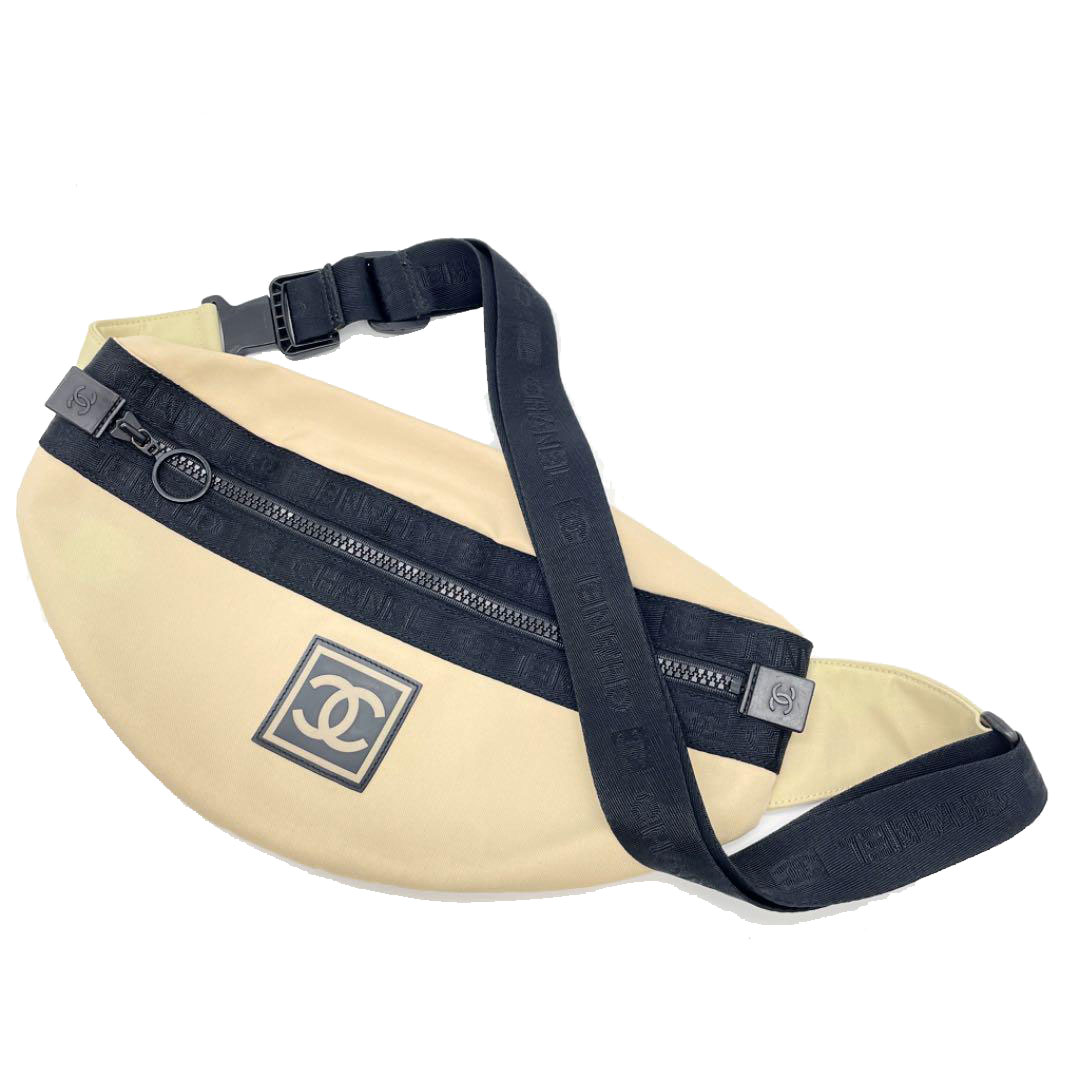 CHANEL シャネル ボディバッグ ワンショルダーバッグ バナナバッグ スポーツライン ナイロン ベージュ ブラック 7番台