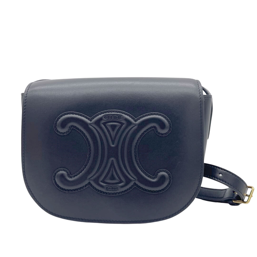 CELINE セリーヌ フォルコ キュイル トリオンフ ショルダーバッグ スムースカーフスキン ブラック 198263DU3.38...